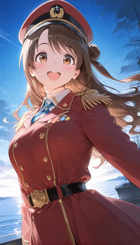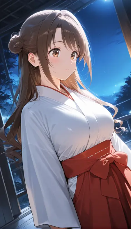 IMShimaUzu, long hair, breasts, brown hair, medium breasts, brown eyes, hair bun, single hair bun, single side bun, large breasts, hair intakes, sidelocks,
