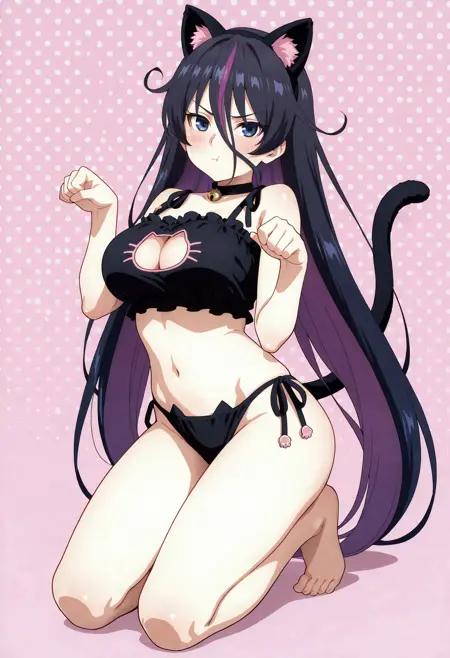 luciarogier, very long hair, purple hair, streaked hair, blue eyes, hair between eyes, large breasts,