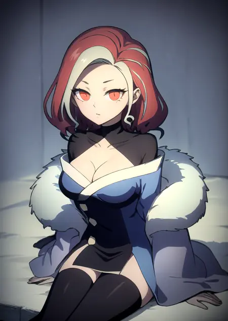 주요 복장: 털 장식, 드레스, 검정 다리 착용, 팬티스타킹, 코트, 가슴 노출.