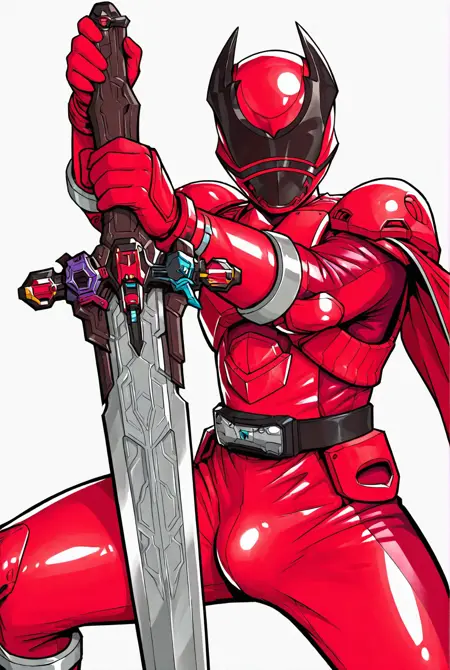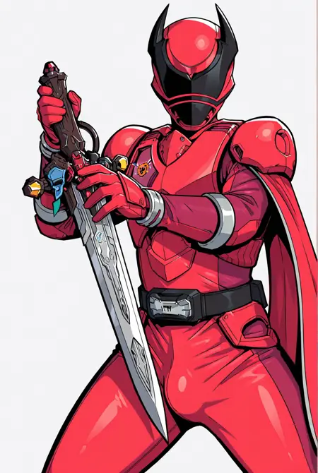kuwagata 0hger , helmet,belt,cape,armor,gloves,tokusatsu,red bodysuit,sword,holding weapon, boots