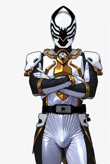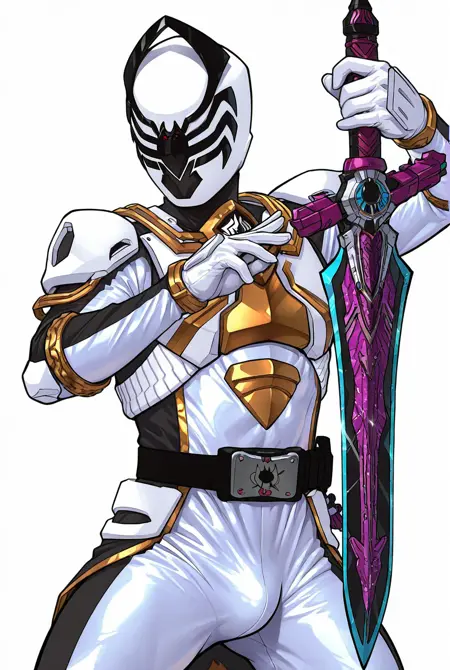 spider kum0nos, helmet,armor,belt,tokusatsu,gloves,white gloves,bodysuit, sword,holding weapon, boots