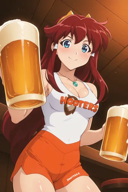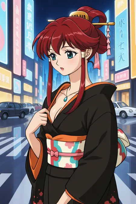 メインプロンプト: Dita_Liebely、長い赤髪、サイドロックス、髪のチューブ、青い目、ジュエリー、ネックレス、輝く肌、中くらいの胸