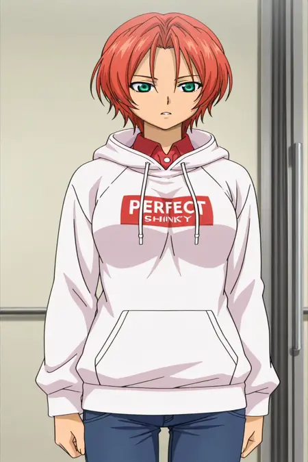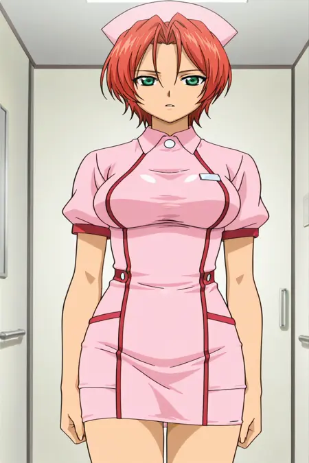 Appearance prompts: 1girl, red hair, short hair, green eyes, breasts