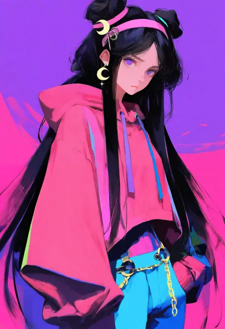 1girl, solo, coloruhbstrack2, colorful, abstract,