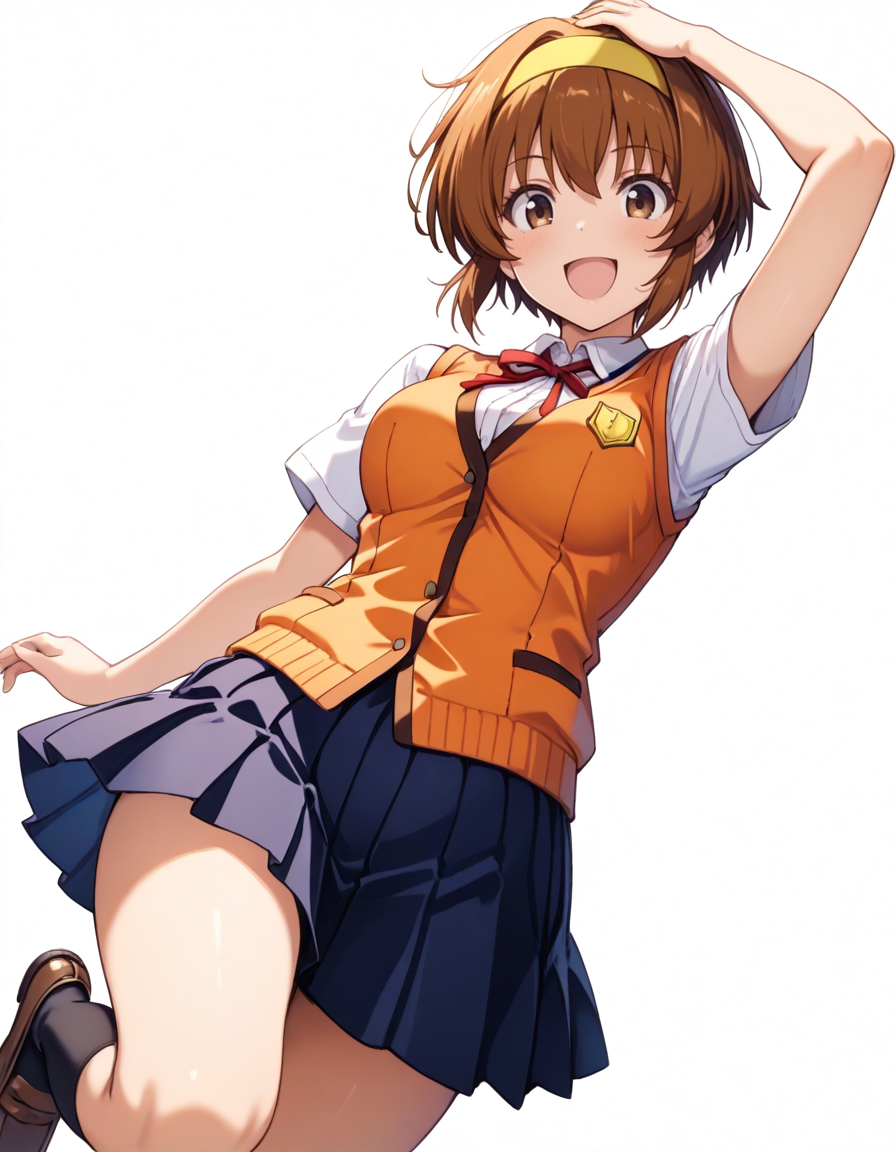 arisaka kazuki, brown hair, short hair, brown eyes, headband,