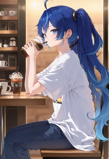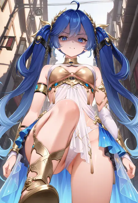 Luno, twintails, blue hair, blue eyes, dress, armlet, underwear, single detached sleeve,