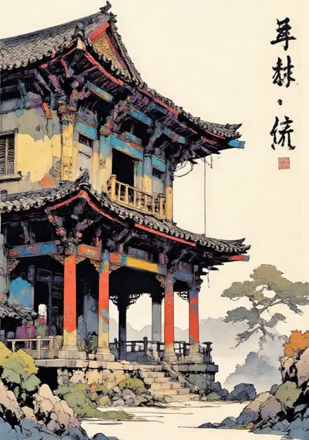 Mangaka style, benhui illustration, colorful, vivid, vibrant, dynamic, bright colors and abstract brushstrokes.