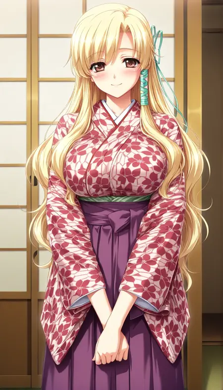 Shouji Midori, blonde hair, curtained, parted to side, brown eyes