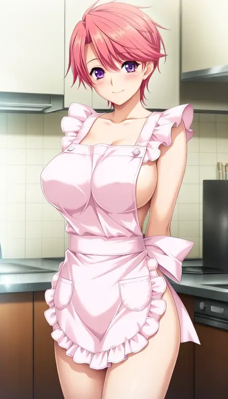 Shiina Kei, pink hair, short hair, parted to side, violet eyes