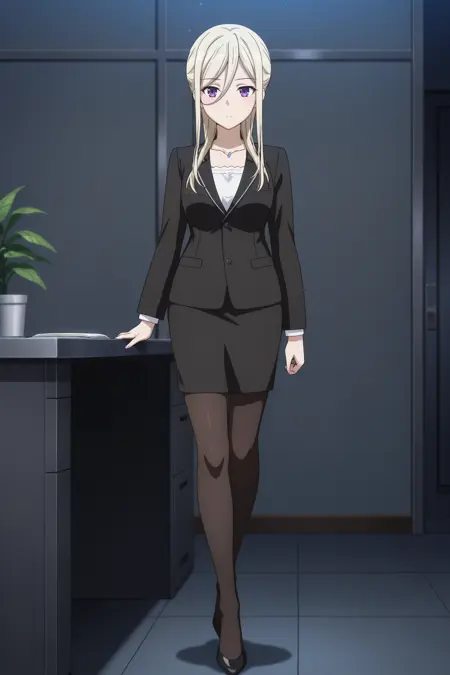 EllenSuit, black_suit, pencil_skirt, skirt_suit, black_pantyhose, high_heels,