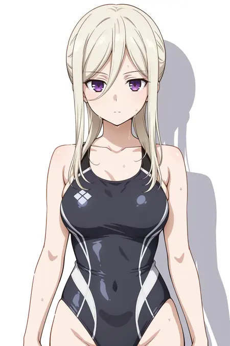 EllenMathers, platinum-blonde_hair, purple eyes, long hair, hair_between_eyes, sidelocks, bangs, mature_body