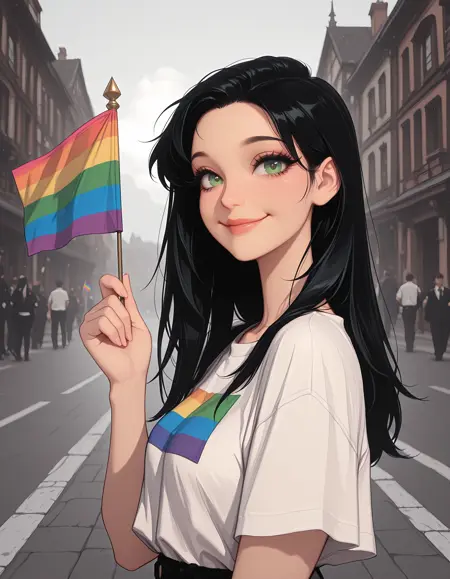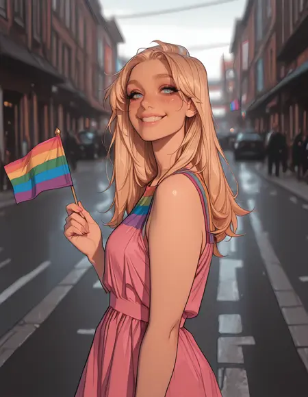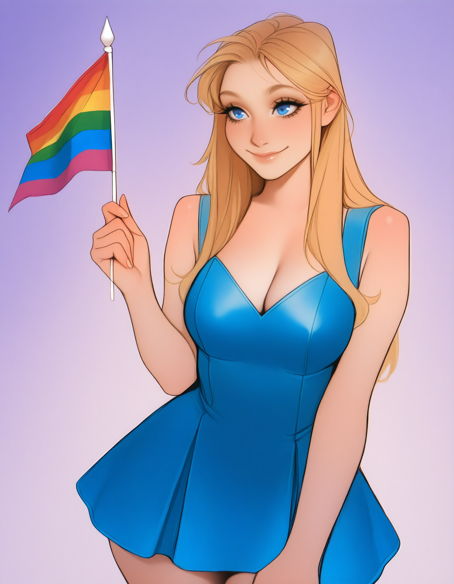 This is a LoRA aimed at getting higher accuracy for "holding flag, rainbow flag". This is my first time making a concept LoRA so it's not perfect. It does seem to effect style a little bit, but this can be remedied by lowering the weight. I've found the sweet spot tends to be 0.8! Tested on several checkpoints and with mixing of several other LoRAs and it does seem to perform quite consistently to get you a small rainbow pride flag!