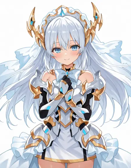 OrigamiBrunhild, BRH_armored_dress, BRH_veil, BRH_headgear,BRH_bowtie, BRH_faulds, BRH_breastplate, BRH_shoulder_armor, BRH_headdress, BRH_thighhighs, BRH_armored_boots, BRH_gloves, BRH_detached_mechanical_wings, BRH_glowing_overskirt, BRH_spear