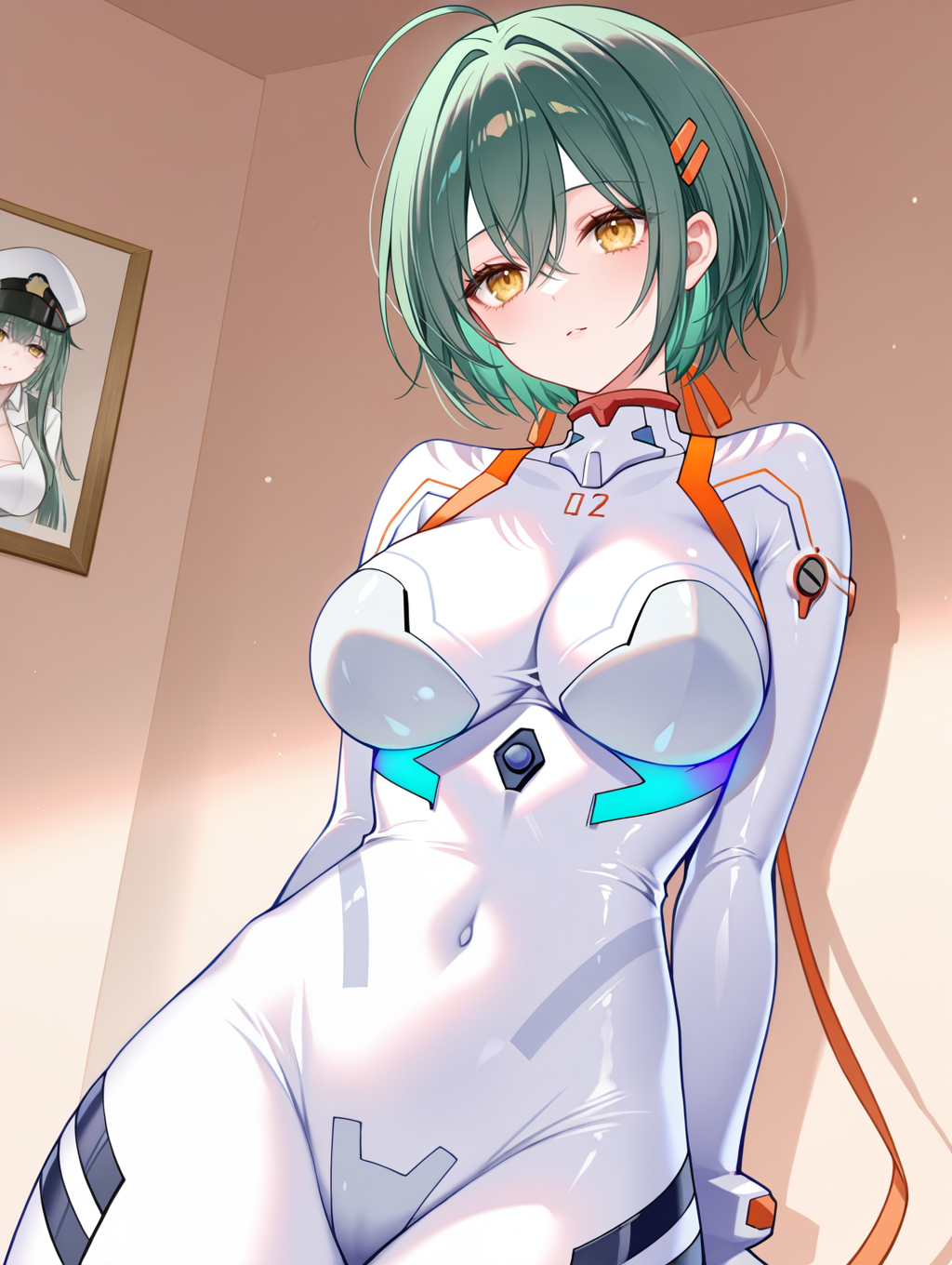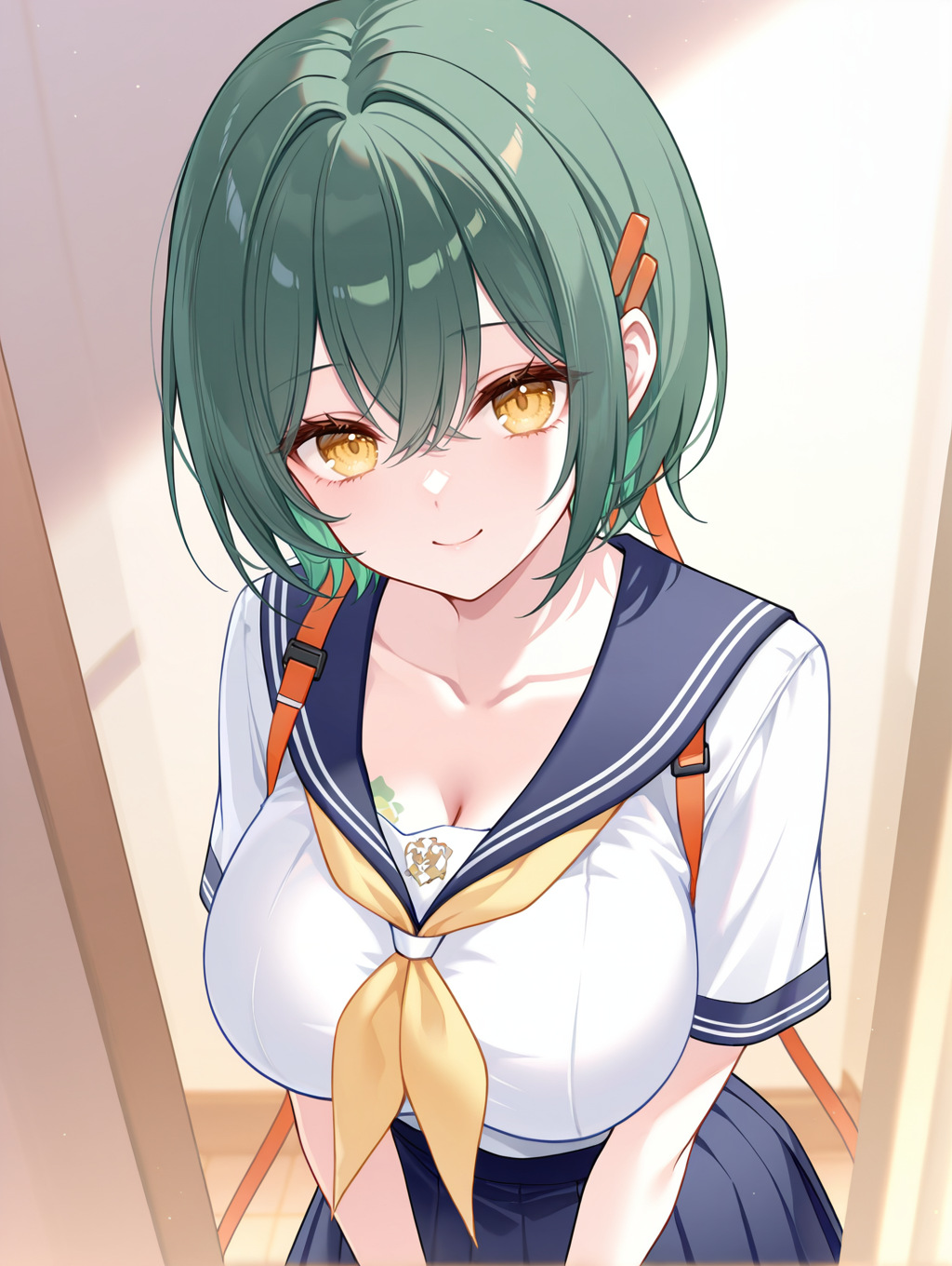 admiral_nakhimov_(first_time_in_the_limelight)_(azur_lane),hair clip,green hair,yellow eyes,short hair,