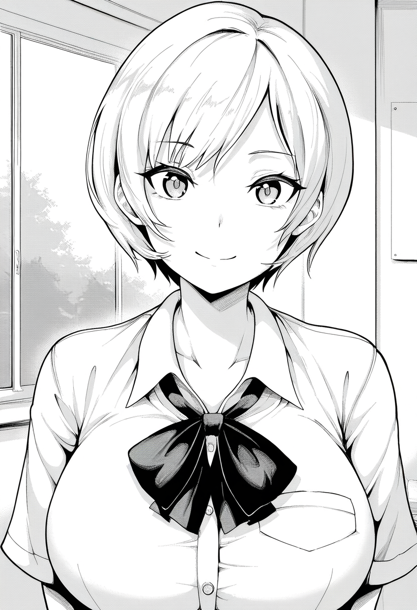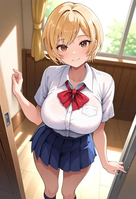 - akaneww, brown eyes, blonde hair, short hair, large breasts,