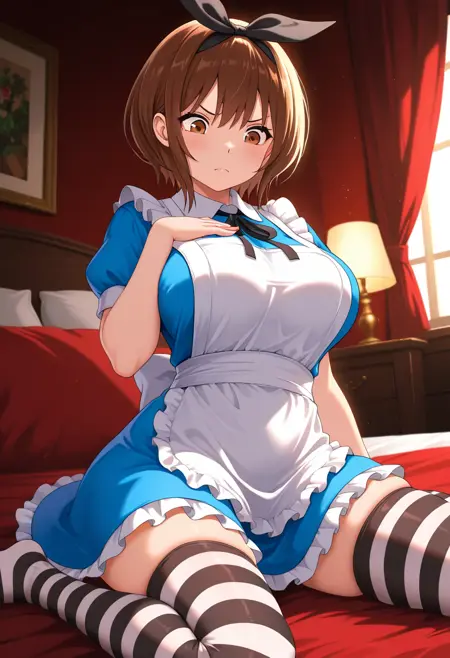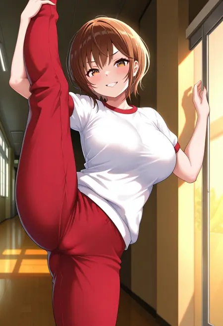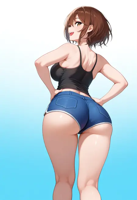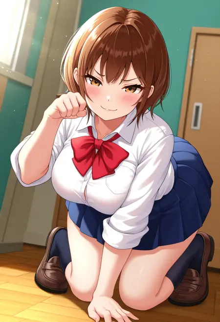 - iinchouww, brown eyes, brown hair, short hair, large breasts,