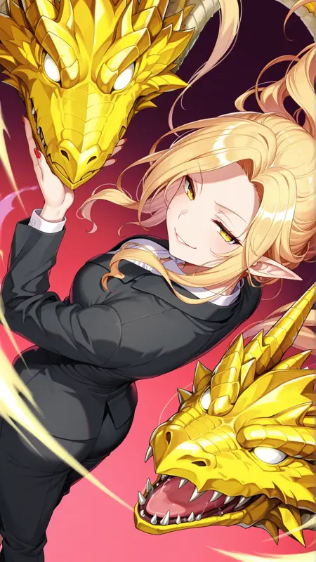외모: 노란 눈, 금발, 긴 머리, 뾰족한 귀, 빨간 손톱,