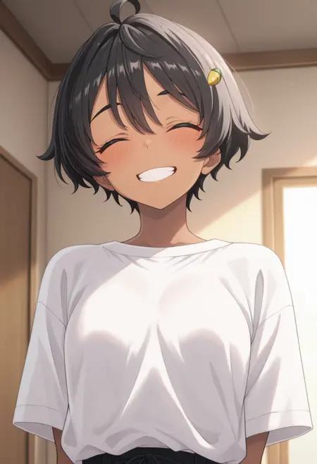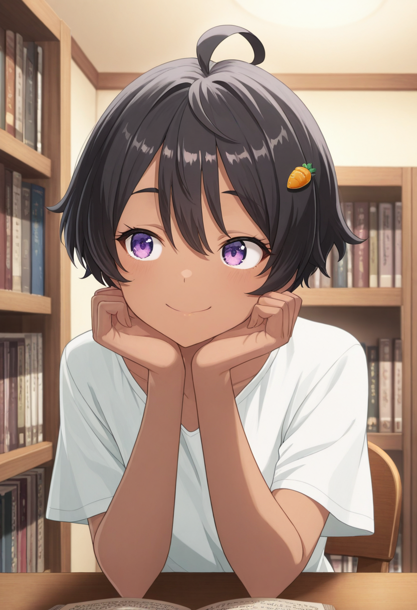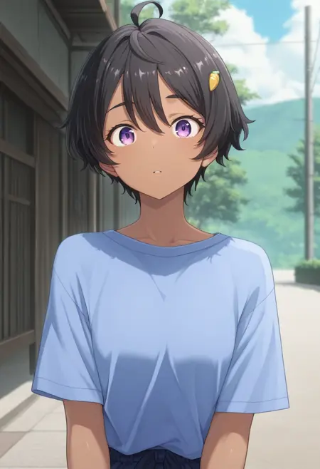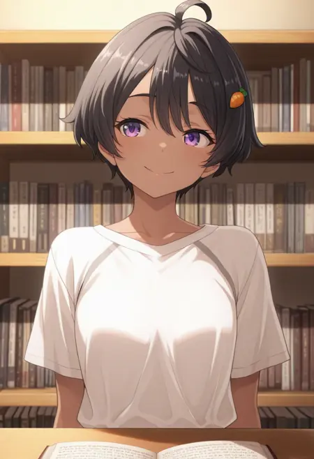 Trigger Words: yakishio remon, black hair, short hair, purple eyes, dark skin, dark-skinned female