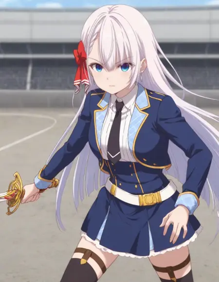 <lora:riselia_ray_crystalia-seiken_gakuin_s1-v3-ixl-anime-soralz:1>, riselia ray crystalia (seiken gakuin), long hair, straight hair, white hair, hair between eyes, side braid, earrings