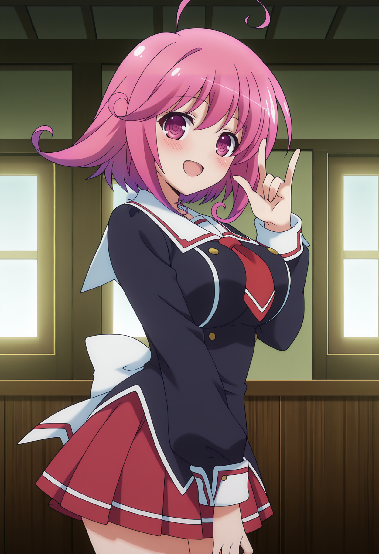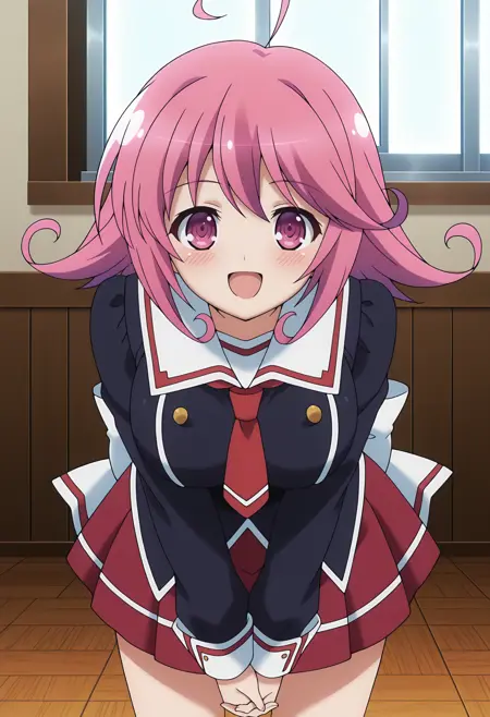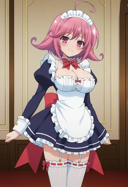 c3svrnty, short hair, pink hair, ahoge, pink eyes, large breasts,