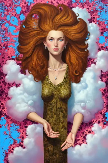 Elegant, decorative Art Deco illustration style featuring stylized human figures with graceful, elongated forms. Rich, flat color planes and intricate, ornamental patterns. Strong influence from costume design, theater, and fashion plates of the 1910s–1930s. Symmetrical, balanced compositions with luxurious fabrics, feathers, pearls, and jewelry. Settings often include classical architecture, floral motifs, and theatrical backdrops. High attention to decorative detail, bold outlines, minimal shading, with a focus on opulence and refinement. Colors typically include gold, black, crimson, ivory, and jewel tones. Exudes sophistication, fantasy, and timeless glamour.