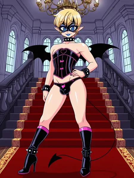 他为了一个金条棒出卖了自己的灵魂。要拿回它,他(或有时是“她”)必须经历各种各样的恋物癖挑战,才能重新获得所失去的一切。这个LoRA涵盖了LordDragonMaster创作的《恶魔糖果》中Jonathan(或“Joani”)的多种不同形象——正如我之前提到的Caley LoRA一样,我强烈推荐给所有对该角色感兴趣的人。这个LoRA会遇到一些问题,大部分可通过负面提示词解决,但我遇到的一个困扰是模型总想把触发词放在图像的角落里。目前还不清楚如何修复,这有点看运气了。我或许会重新调整,专注于单一的魅魔Joani(希望能让翅膀大小更稳定些),因为那确实是我最喜爱的几个场景之一。不过可能不会马上进行。这会是一段很长的描述,我们开始吧。LoRA权重设为1,clip skip设为2效果最佳。