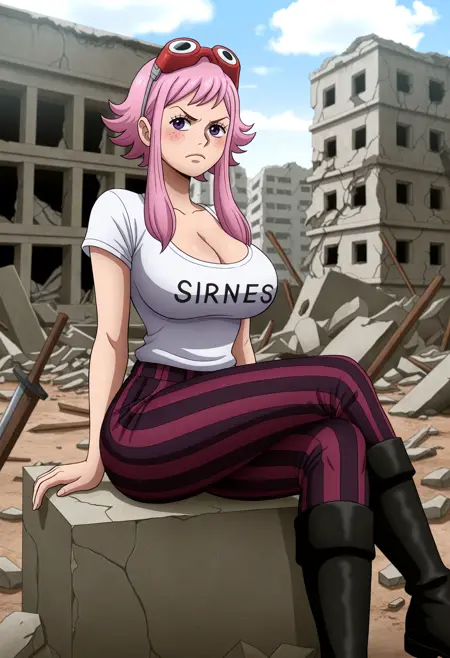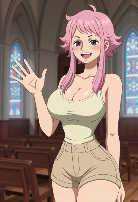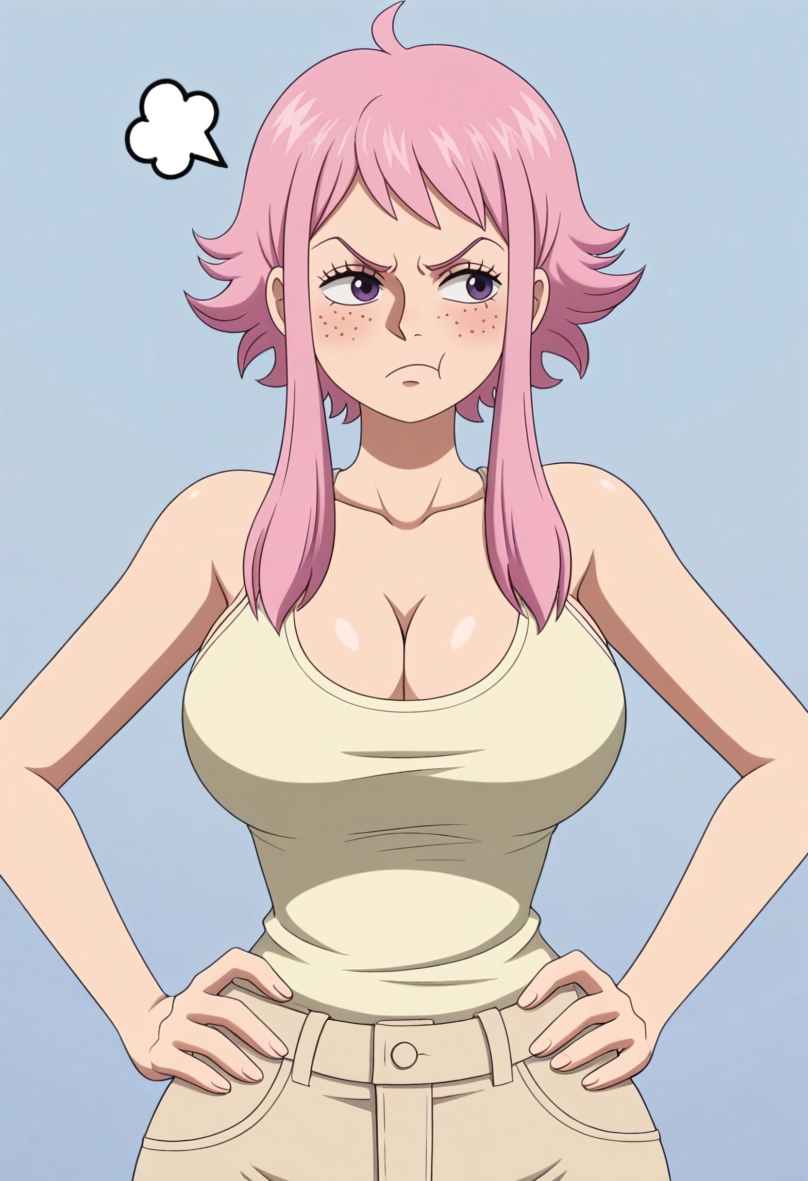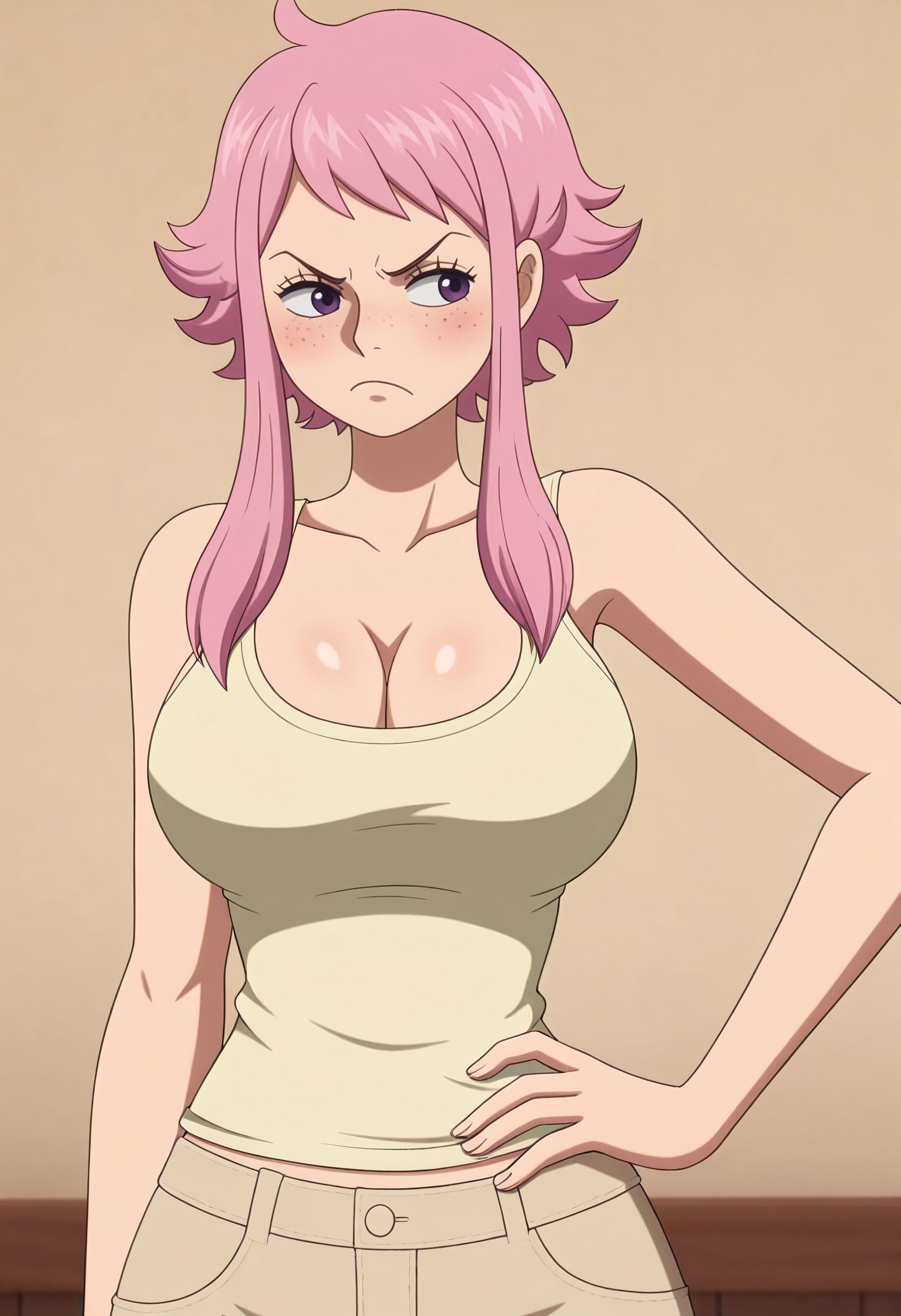 Keywords: ginnyonep, purple eyes, pink hair, sidelocks, bangs, freckles, large breast