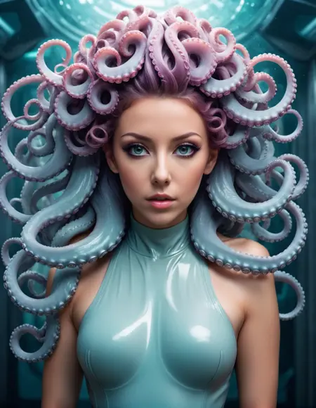 我们非常高兴推出首款触手时尚主题的 LoRA N1。这些无缝生成的视觉作品描绘了一位现代女性,被抽象而超现实的触手温柔地环绕。更重要的是,这些图像均来自我们的企业账号,使用 MidJourney 生成,且完全适宜工作环境(保证无 PG 18 内容)。