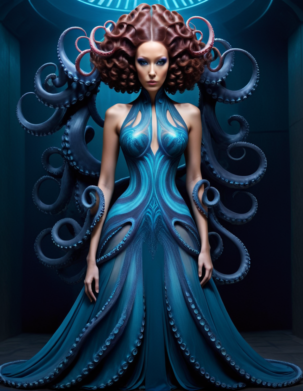 我们非常高兴推出首款触手时尚主题的 LoRA N1。这些无缝生成的视觉作品描绘了一位现代女性,被抽象而超现实的触手温柔地环绕。更重要的是,这些图像均来自我们的企业账号,使用 MidJourney 生成,且完全适宜工作环境(保证无 PG 18 内容)。
