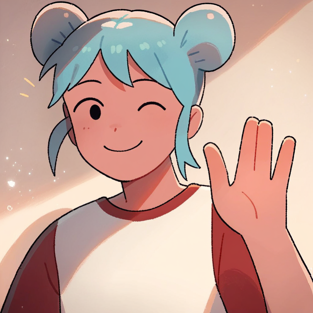 Score_9, score_8_up, score_7_up, 1girl, Lilybbf, blue hair, double hair bun, black eyes, dot eyes