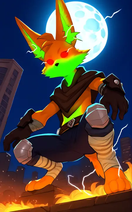 Extra For Fusion Version: red eyes, glowing eyes, green skin, electricity, no mouth**
