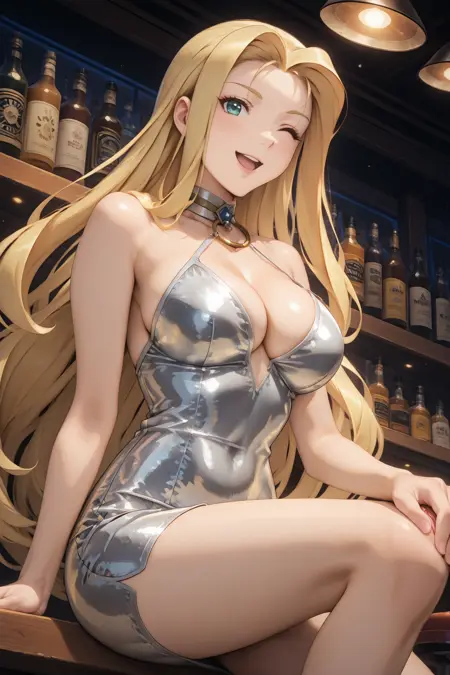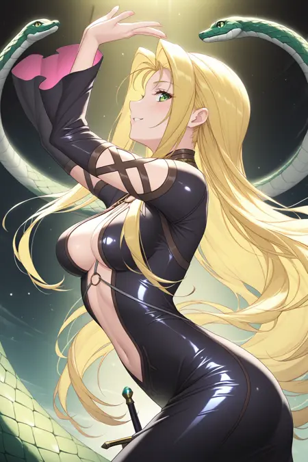 Main prompt: Jura_Elden, long blonde hair, green eyes, lipstick, red lips, makeup, huge breasts