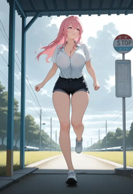 (Positive Prompts) zyanagi, large breasts, pink eyes, long hair, pink hair, hair between eyes, sidelocks,