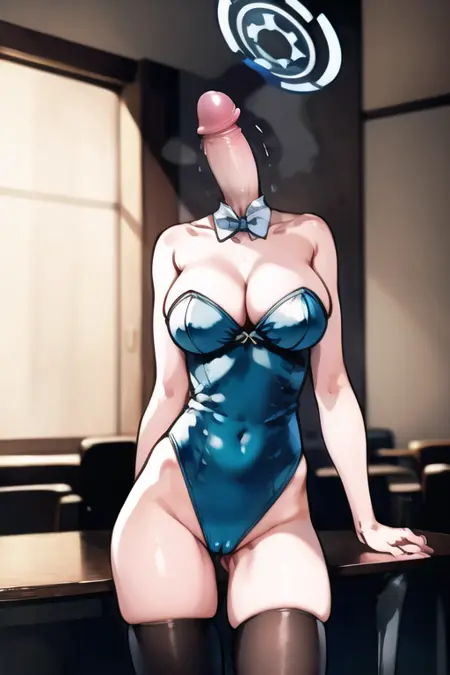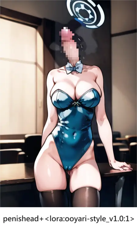 PENISHEAD的用途非常单纯,把所有人物的头部替换成鸡巴。提示词也很简单易懂——【penishead】,可适配几乎所有的角色LORA,只要你不在提示词中描述人物的发型、面部、五官、帽子等特征,这个LORA就能正常生效(少数例外如角色的光环,可以生成在鸡巴化龟头的后脑勺上)。