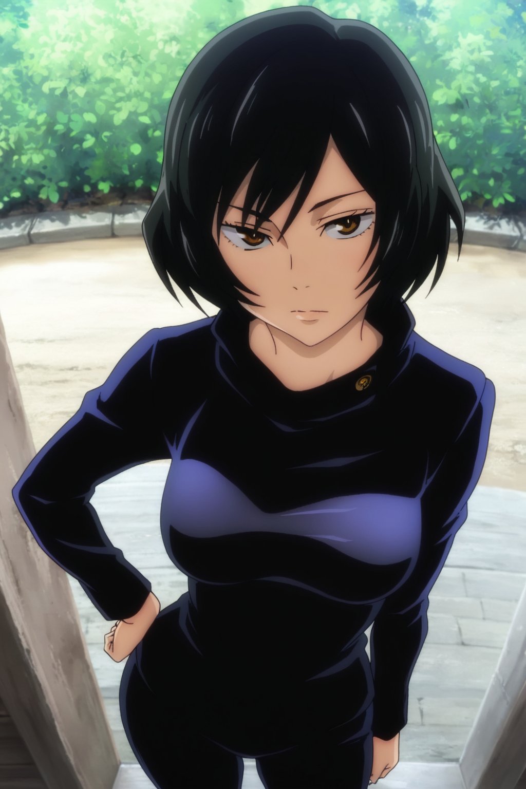 Prompt : masterpiece, best quality, amazing quality, fine details, Zenin Mai, solo, breasts, medium breasts, short hair, black hair, bangs, brown eyes,