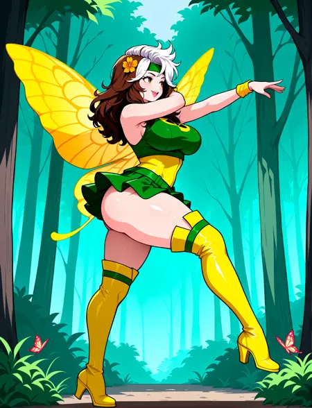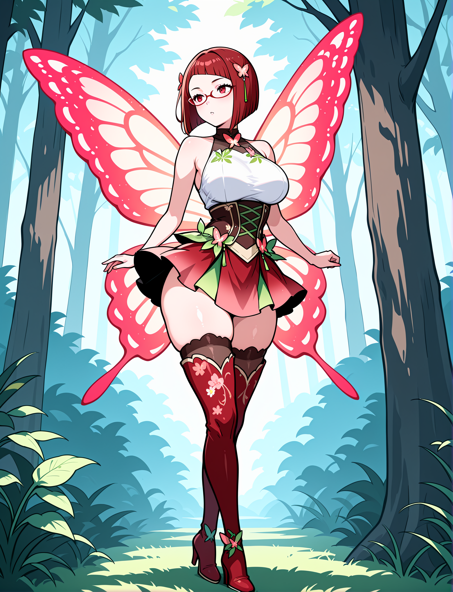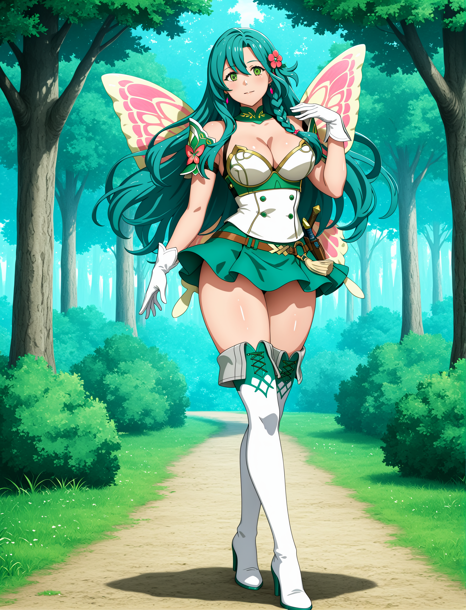 sleeveless, miniskirt, thighhighs, thigh boots, high heels, zettai ryouik, floral print, hair flower,
