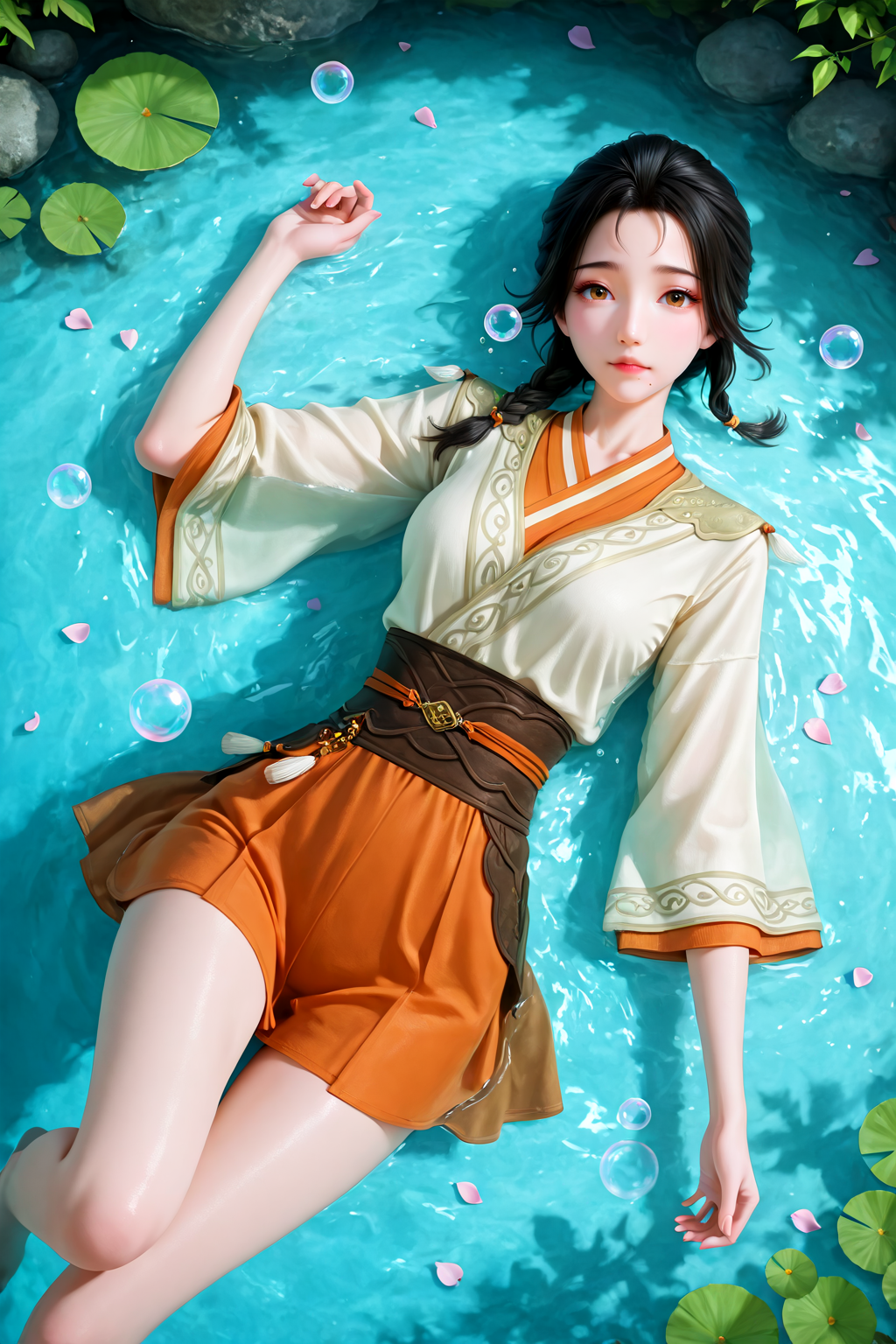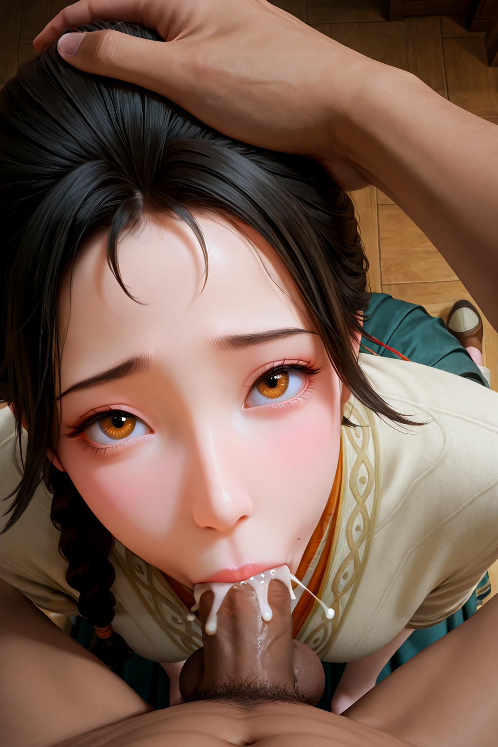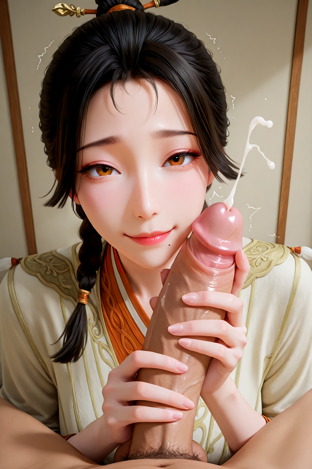 gongsun xing, black hair, braid, brown eyes, mole, mole on nose, mole under mouth
