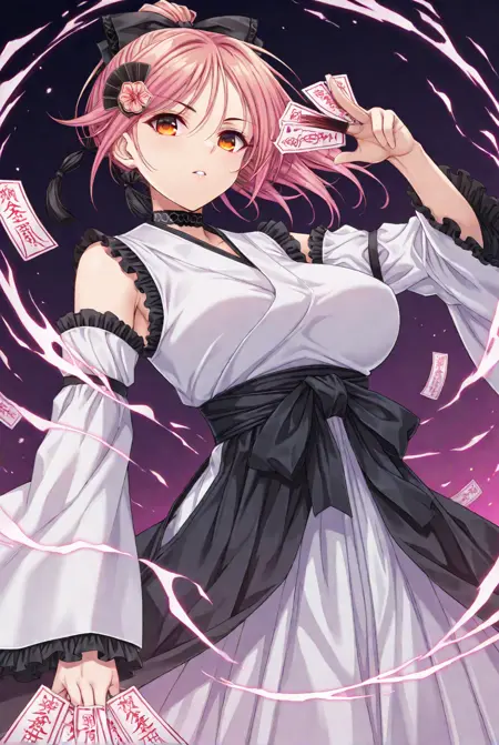 - 双马尾,眼影,嘴唇,(褶边)项圈,(黑色)褶边,Jiraikei 风格,粉色连衣裙,(黑色)丝带,分袖,袖带,蝴蝶结,高腰裙,(层叠/褶边裙),(不对称腿部着装),(大腿绑带),(渔网过膝袜),(褶边过膝袜);