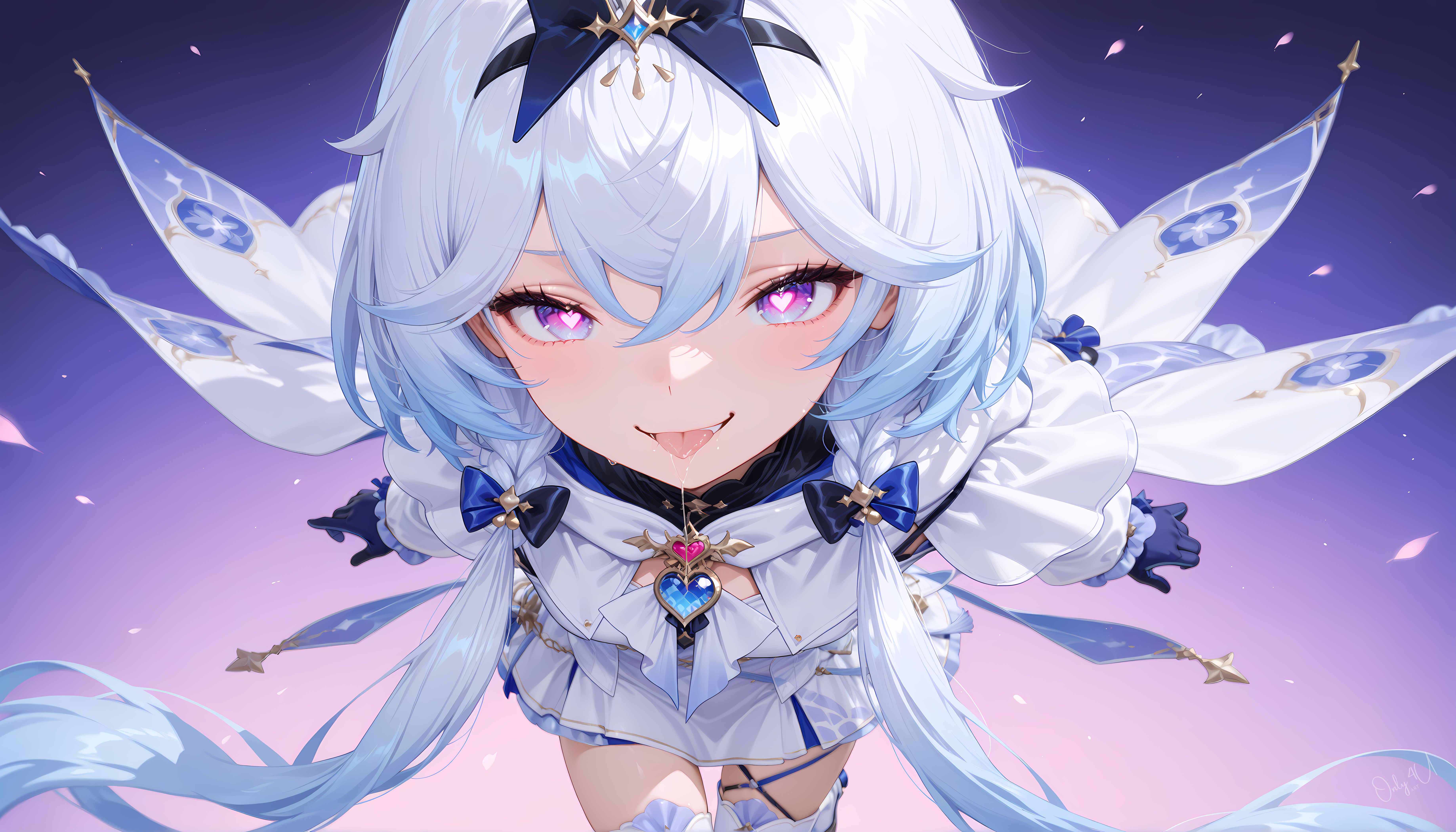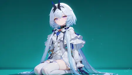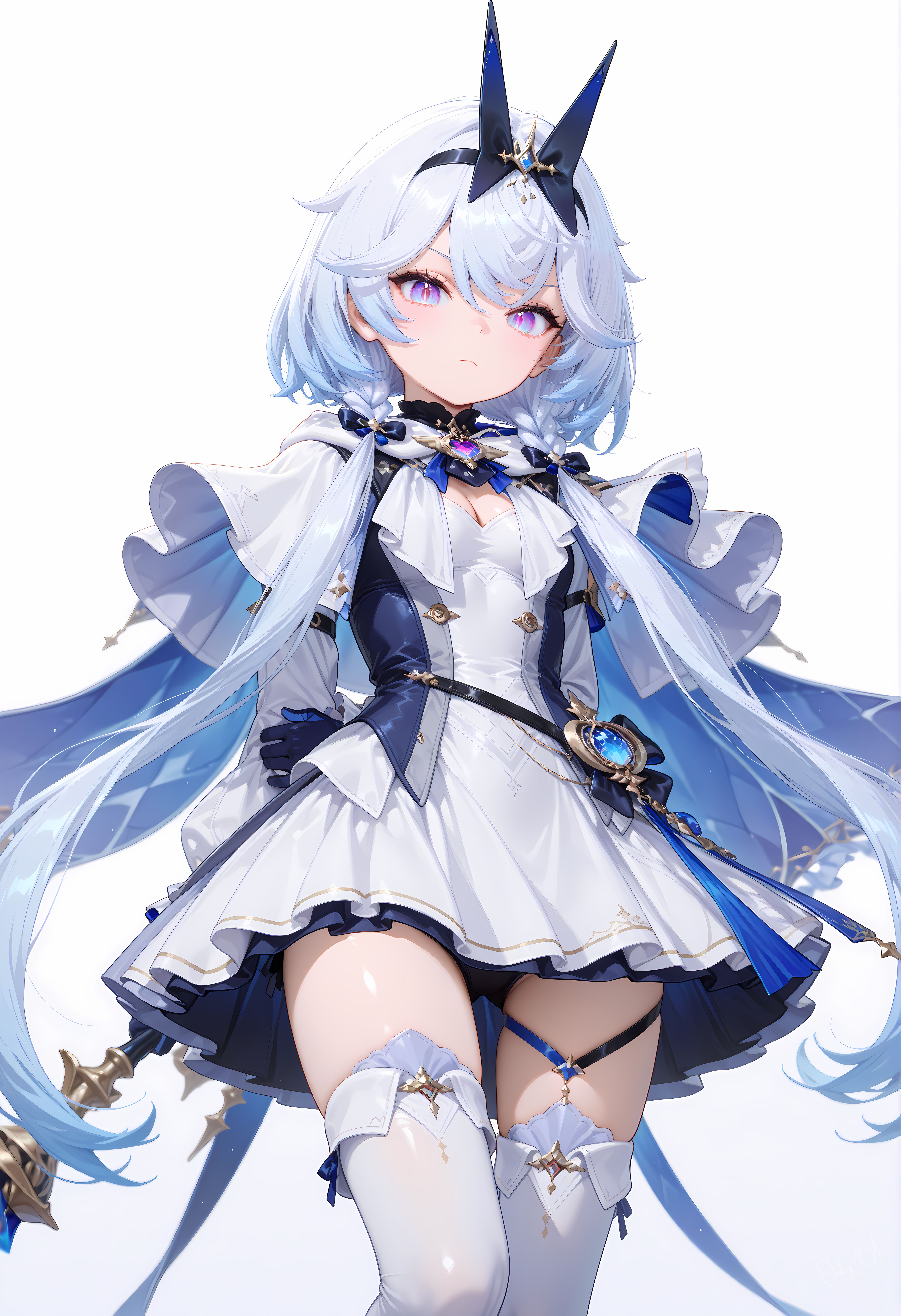 onlyMio, purple eyes bangs,low twintails, petite,white hair,blue hair,