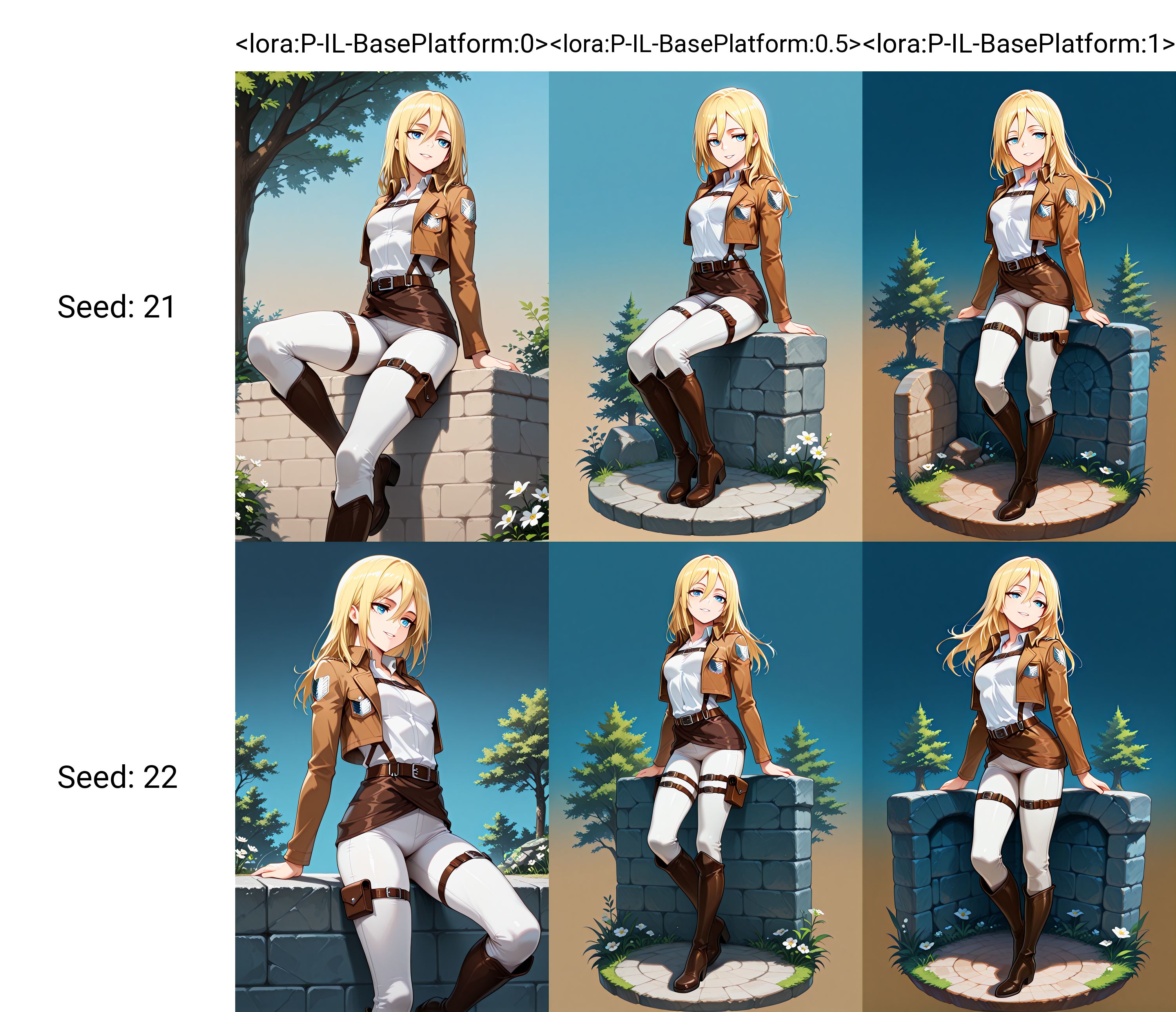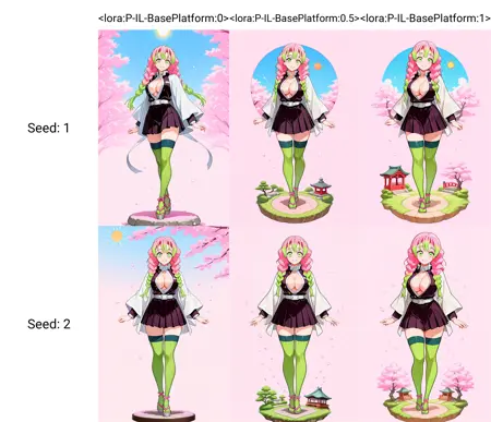 This LoRA was made to help consistently generate that stylish little platform under a character's feet — like a figure base.