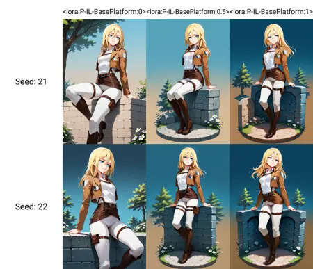 这个LoRA旨在帮助一致地生成角色脚下的时尚小平台——类似于人像底座。