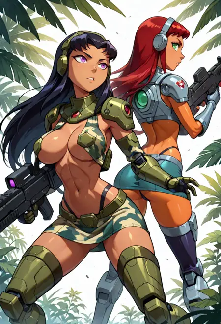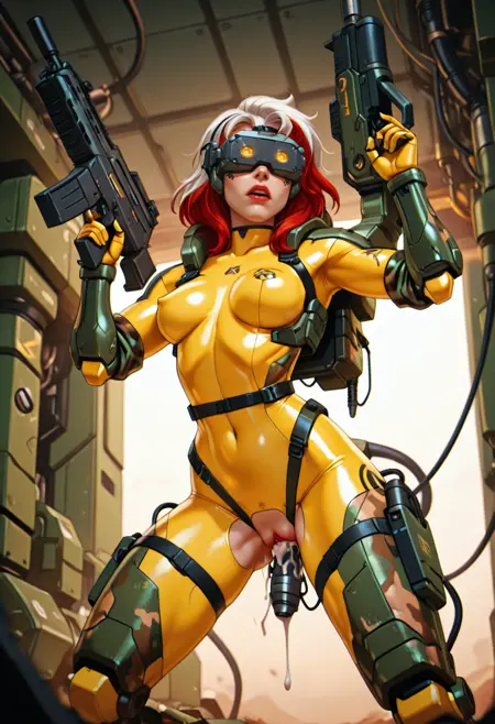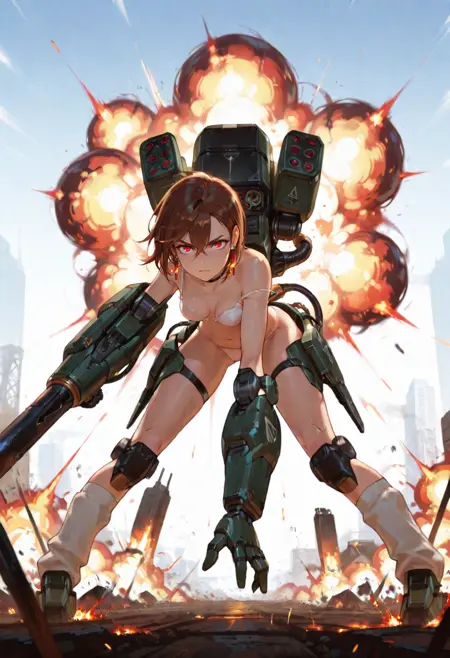 Sfw Trigger words: armor, gloves, mask, gun, helmet, harness, head-mounted display, mechanical (arms, parts, legs), robot, cable, holding (gun, weapon)