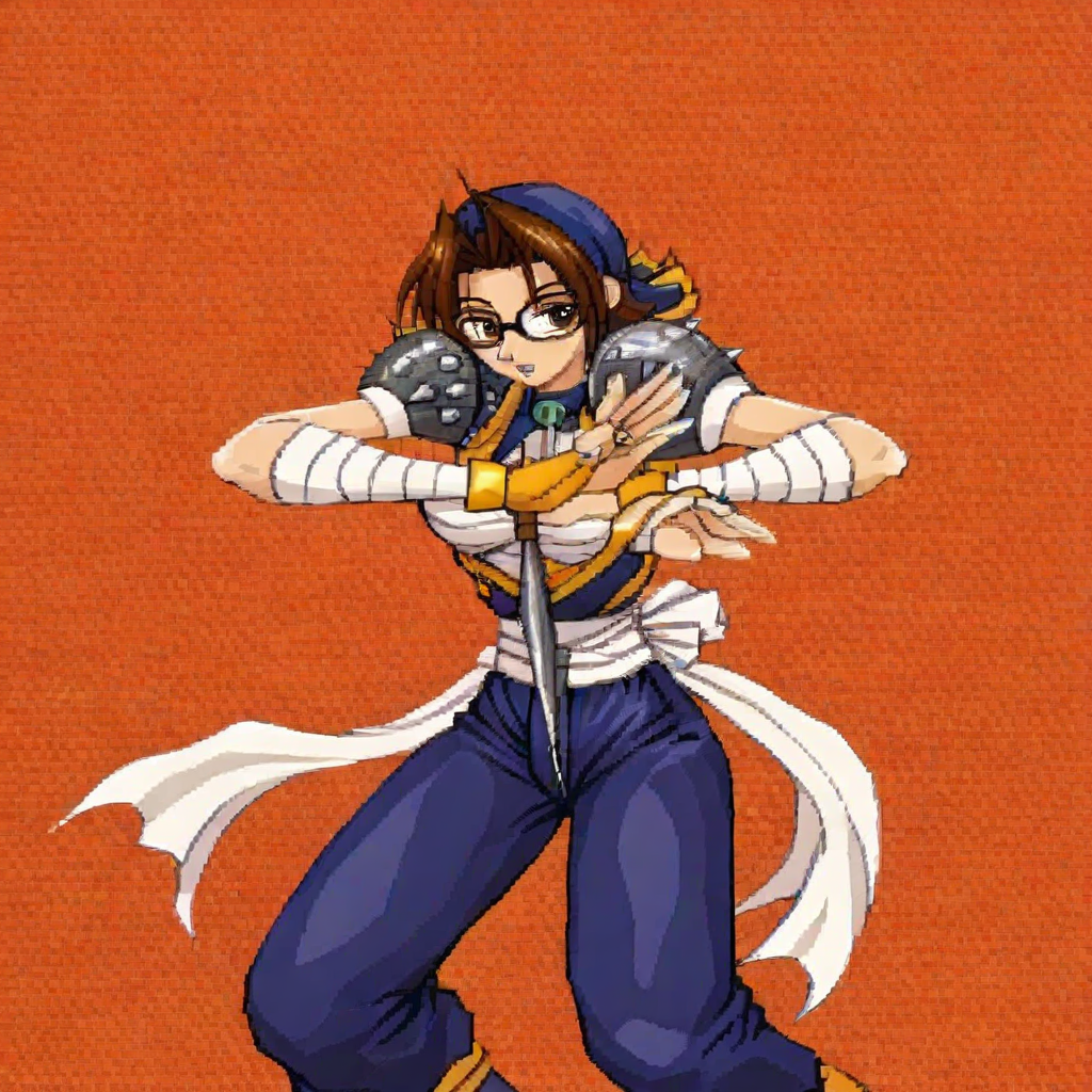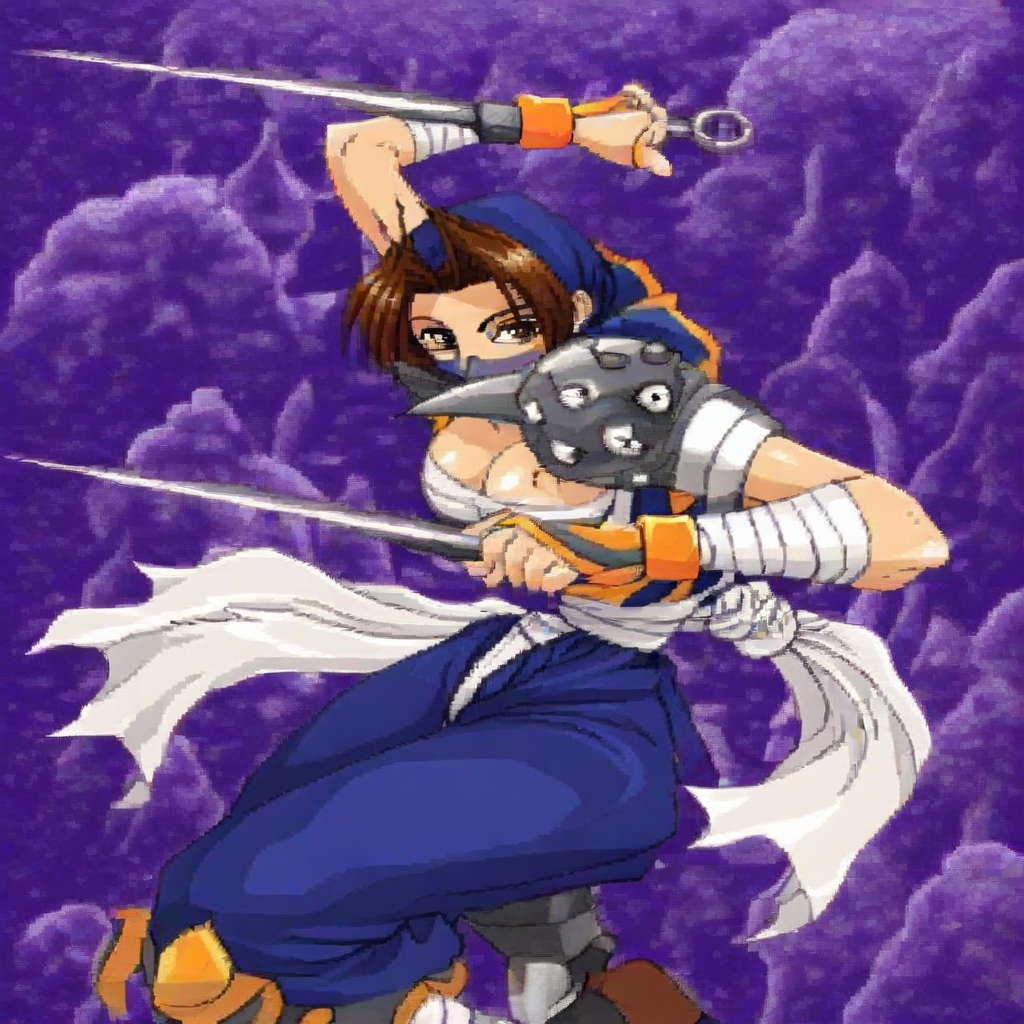 kiriko_tōkidenshō, 1girl, solo, brown hair, bandages, brown eyes, spikes, armor, short hair, ninja, oekaki, sash