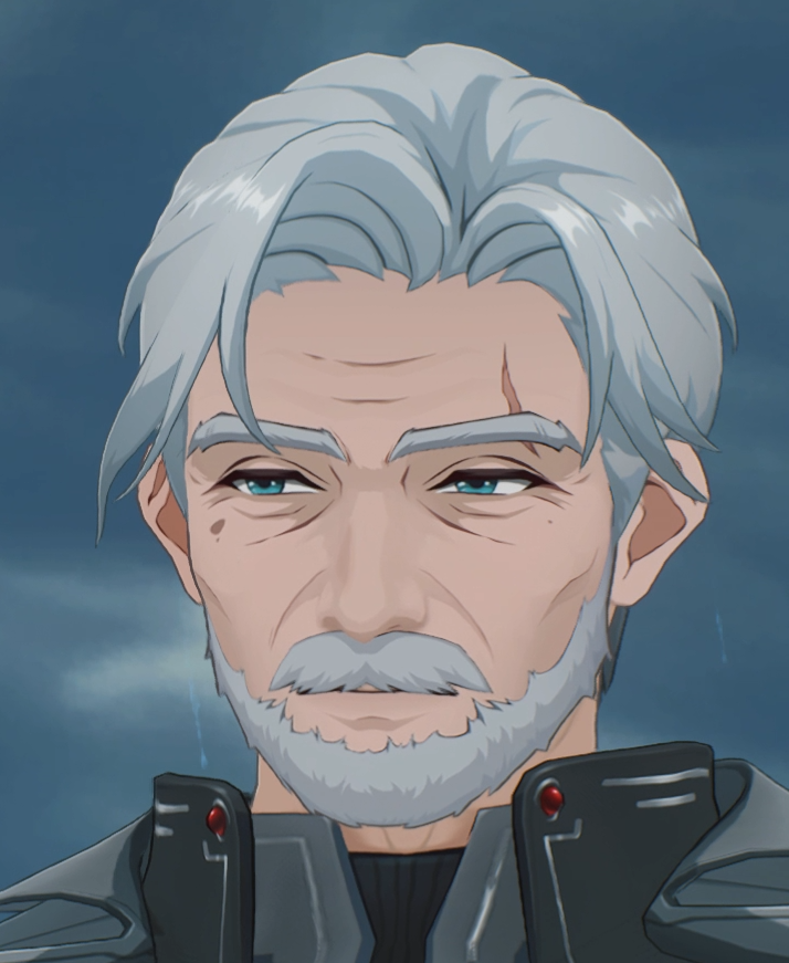 Francesco Montelli, scar across eye, mole under eye, short hair, beard, grey hair, grey beard, mustache, facial hair, turquoise eyes