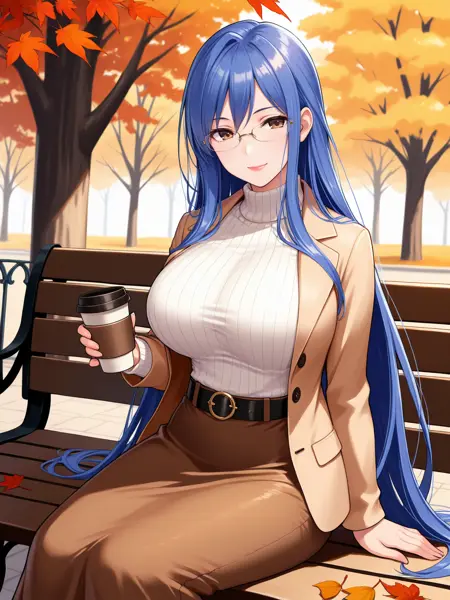 外貌:aidaaoi,蓝色长发,非常长的头发,棕色眼睛,大乳房,成熟女性,淡色口红