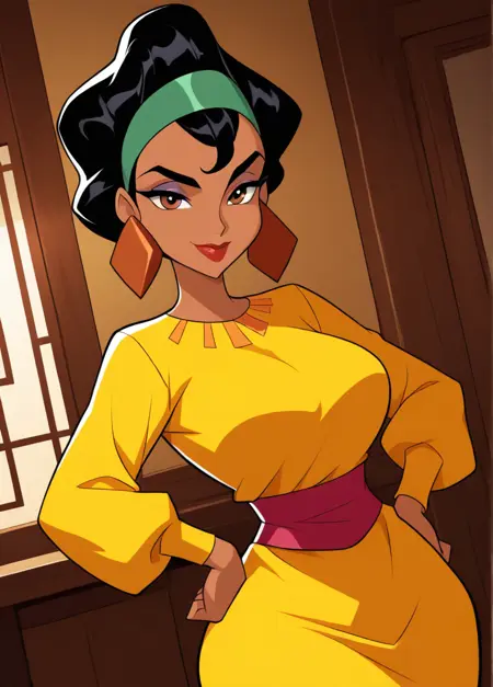 长袖, 黄色连衣裙, 饰品, 耳环, 腰带, 深色皮肤女性,