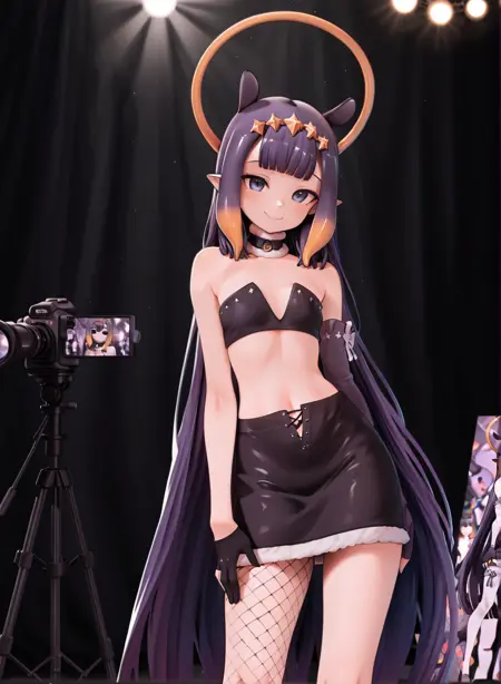 권장 의상 태그: 한쪽 다리 스타킹, 피시넷 스타킹, 한쪽 다리 노출, 복부 노출, 불일치 장갑, 한쪽 팔꿈치 장갑