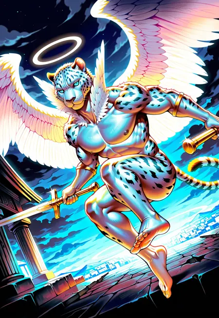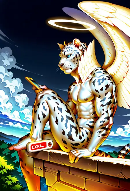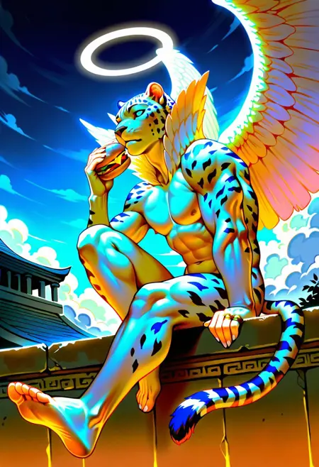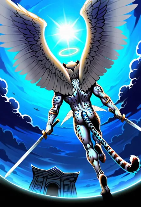 그가 뒤를 돌아보게 하려면 부정 프롬프트에 “wings on hip”을 포함하세요. 그렇지 않으면 그의 엉덩이에서 날개가 자라납니다.