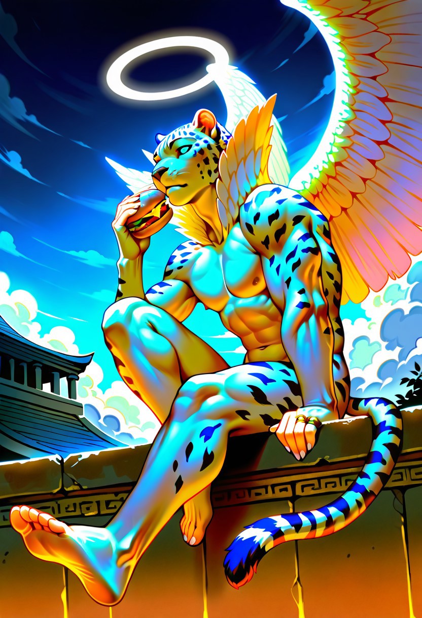 If you want him to turn around, put “wings on hip” in the negative prompt. Otherwise, wings will grow out of his buttocks.