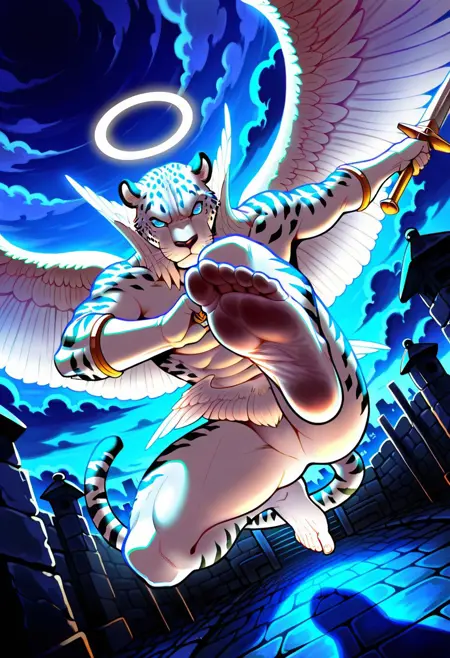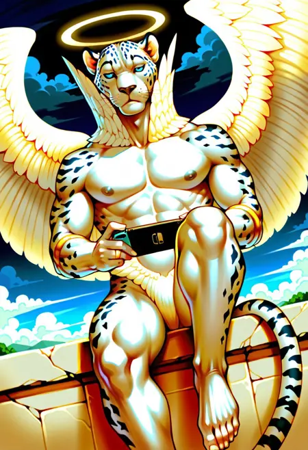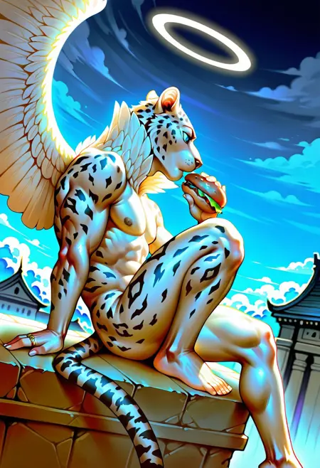 If you want him to look at the soles of his feet, put “white soles” in the prompt and “pawpads” in the negative prompt to make him look more like he really is.